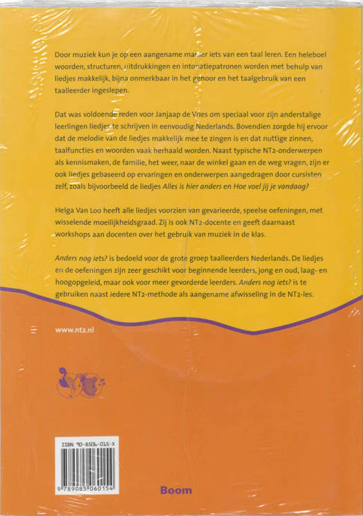Anders nog iets? is bedoeld voor de grote groep leerders van het Nederlands als tweede taal. De liedjes en de oefeningen zijn zeer geschikt voor beginnende leerders, jong en oud, laag- en hoogopgeleid, maar ook voor meer gevorderde leerders. Anders nog iets? is te gebruiken naast iedere NT2-methode als aangename afwisseling in de NT2-les. De methode bevat naast het boek een ondersteunende website met alle liedjes en de liedteksten en akkoorden. Iedere les bestaat uit meerdere oefeningen. Voorin het boek is een handleiding voor docenten opgenomen.