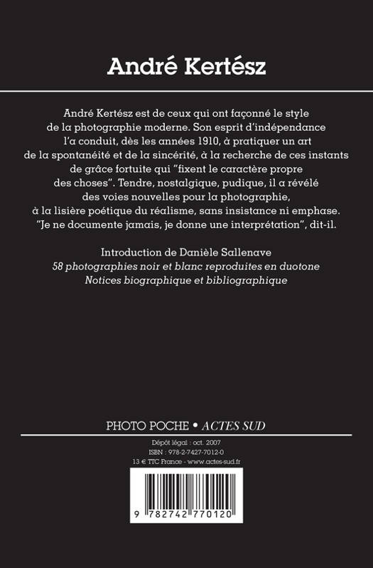 André Kertész fait partie de ceux qui ont façonné le style de la photographie moderne. Son esprit d'indépendance l'a conduit, dès les années 1910, à pratiquer un art de la spontanéité et de la sincérité, à la recherche de ces instants de grâce fortuite qui "fixent le caractère propre des choses". Tendre, nostalgique, pudique, il a révélé des voies nouvelles pour la photographie, à la lisière poétique du réalisme, sans insistance ni emphase.