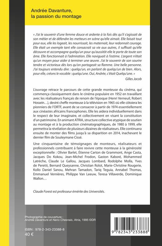 L'ouvrage retrace le parcours de cette grande monteuse du cinéma, qui commença classiquement dans le cinéma populaire en 1952 en travaillant avec les réalisateurs français de renom de l'époque (Henri Verneuil, Robert Hossein), devint cheffe monteuse à la télévision en 1965 où elle côtoiera les pionniers de l'ORTF, avant de se consacrer à partir de 1974 essentiellement aux cinéastes africains francophones. Elle les aidera individuellement dans le respect de leur imaginaire, et collectivement en visant la constitution d'un patrimoine. En animant ATRIA, structure collective atypique de soutien au montage et à la production cinématographiques, de 1980 à 1999, elle permettra la révélation de plusieurs dizaines de réalisateurs, notamment d'Afrique francophone. Elle continuera ensuite de monter des films jusqu'à sa disparition en 2014, inachevant le dernier film de Souleymane Cissé. Une cinquantaine de témoignages de monteurs, réalisateurs et professionnels contribuent à faire revivre cette monteuse à la générosité exceptionnelle.