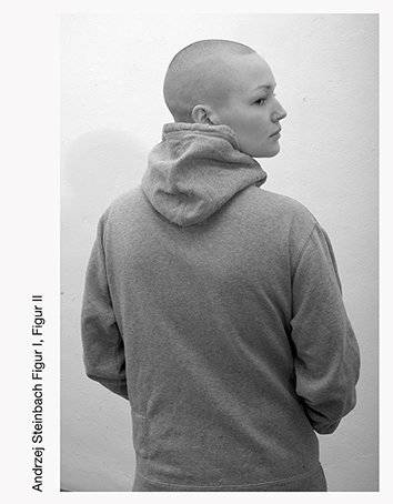 Figure I and Figure II are two young women who immediately confuse the viewer. Figure I is photographed against a neutral background, striking various different poses and dressed in an assortment of clothes that make it impossible to ascribe her a fixed role. Depending on which photograph you are looking at, the figure may look more female or more male -- there is no way to resolve the ambiguity. The same is true for Figure II: she stands in front of a lamella curtain, trying on a tube cowl. As with Figure I, there can be no clear-cut role assignment, which is the effect Steinbach is striving for. His two black-and-white portrait series ask the viewer to look carefully and make comparisons -- reminiscent of Marianne Wex's photo studies. The artist plays with the gestural language of fashion photography, which he repeatedly subverts, paring away at the image to reveal the residual identities of his models.