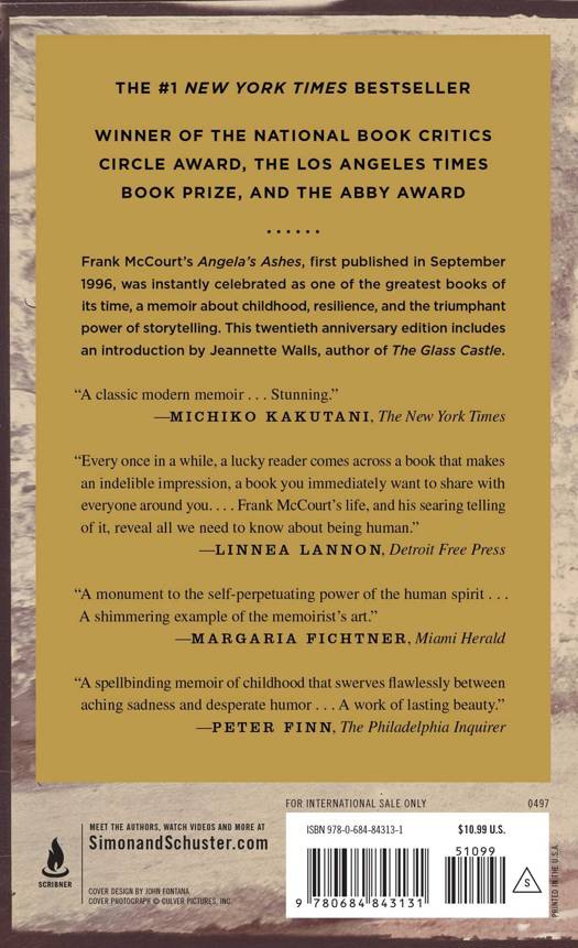 Imbued with Frank McCourt's astounding humor and compassion, Angela's Ashes is a glorious Pulitzer Prize-winner that bears all the marks of a classic.