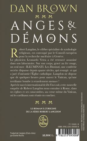 Robert Langdon, le célèbre spécialiste de symbologie religieuse, est convoqué par le Conseil européen pour la recherche nucléaire à Genève. Le physicien Leonardo Vetra a été retrouvé assassiné dans son laboratoire. Sur son corps, gravé au fer rouge, un seul mot : ILLUMINATI. Les Illuminati, une confrérie secrète, formée au XVIe siècle par des savants persuadés que l’Eglise constitue l’obstacle essentiel aux progrès du savoir. Un cercle d’initiés disparu depuis quatre siècles, qui resurgit et qui a juré d'anéantir l'Église catholique. Langdon ne dispose que de quelques heures pour sauver le Vatican qu'une terrifiante bombe à retardement menace ! Après le succès international de Da Vinci code, cette nouvelle enquête de Robert Langdon nous entraîne à Rome, dans ses églises et ses catacombes, au cœur même du Vatican où les cardinaux sont réunis en conclave.