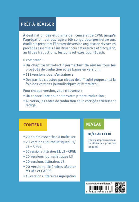 À destination des élèves de classes préparatoires aux grandes écoles, des étudiants du supérieur et des candidats au CAPES ou à l’Agrégation d’anglais, cet ouvrage d’entraînement gradué à la version anglaise a été conçu pour permettre de réviser et de maîtriser cet exercice.