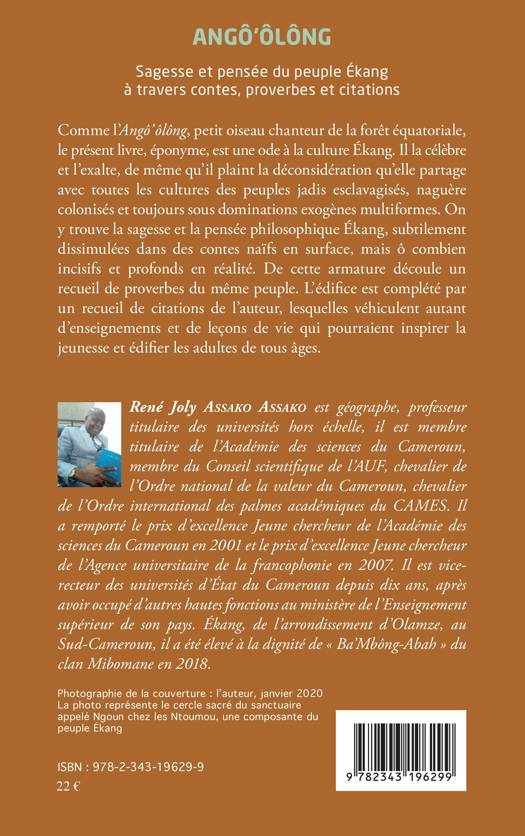 Comme l'Angô' ôlông, petit oiseau chanteur de la forêt équatoriale, ce livre est une ode à la culture Ékang. On y trouve la sagesse et la pensée philosophique Ékang, subtilement dissimulées dans des contes naïfs en surface, mais ô combien incisifs et profonds en réalité. De cette armature découle un recueil de proverbes et l'édifice est complété par un recueil de citations de l'auteur, lesquelles véhiculent autant d'enseignements et de leçons de vie.