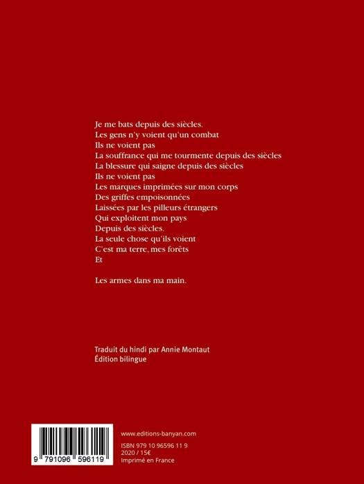 Dans ses travaux de reporter comme dans sa poésie, Jacinta Kerketta n’a en effet de cesse de porter la voix des Adivasi, de retracer leur parcours et leurs combats, et de rendre un vibrant hommage à leur culture qui se trouve être celle du lien unissant la terre et l’homme, où toute vie animale, végétale ou minérale mérite le respect et l’amour. Au-delà du témoignage, elle nous livre ainsi une réflexion poétique de première importance à l’heure de l’urgence écologique.
