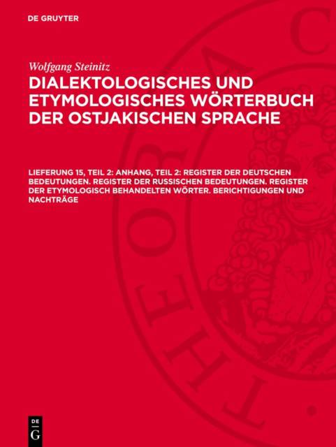 Keine ausführliche Beschreibung für "Anhang, Teil 2: Register der deutschen Bedeutungen. Register der russischen Bedeutungen. Register der etymologisch behandelten Wörter. Berichtigungen und Nachträge" verfügbar.