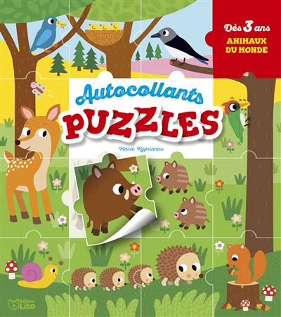 Des illustrations sur le thème des animaux à compléter à l'aide des pièces de puzzle autocollantes pour développer sa concentration.