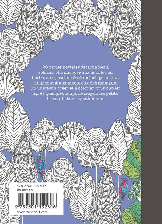 20 cartes postales détachales à colorier et à envoyer aux artistes en herbe, aux passionnés de coloriage ou tout simplement aux amoureux des animaux. Un univers à créer et à colorier pour oublier après quelques coups de crayon les petits tracas de la vie quotidienne.