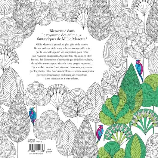 Millie Marotta a grandi au plus près de la nature. De son enfance et de ses nombreux voyages effectués par la suite, elle a puisé son inspiration pour créer son royaume imaginaire. Aujourd’hui, elle vous en offre les clés. Ses illustrations n’attendent que de jolies couleurs, de subtiles nuances pour devenir votre propre royaume… Du scarabée mordoré aux oiseaux chatoyants, en passant par les plantes et les fleurs multicolores… laissez-vous porter par votre imagination et donnez vie et couleurs à ces animaux et à leur univers.