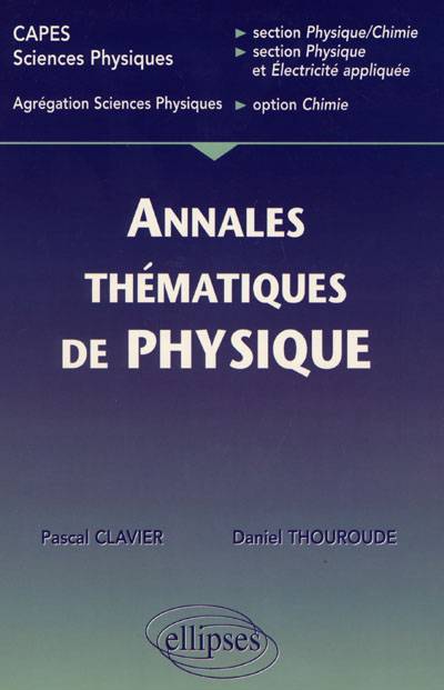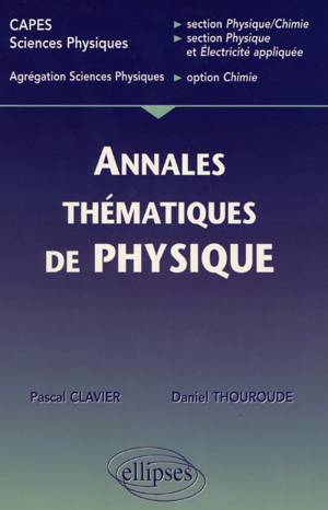 Cet ouvrage s'adresse aux étudiants préparant les concours du CAPES de sciences physiques, section physique chimie, section physique et électricité appliquée ainsi que de l'agrégation de sciences physiques, option chimie. Il leur propose les solutions de problèmes de physique posés ces dix dernières années aux concours de recrutement cités ci-dessus, mais, à la différence des recueils d'annales classiques, les utilisateurs y trouveront un regroupement thématique des sujets proposés. Ce découpage, mieux adapté à une révision progressive du programme, contribuera à une meilleure préparation des concours.
