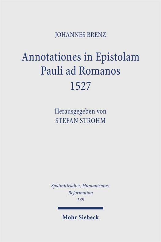 Johannes Brenz (1499-1570) erklart den Romerbrief 1527/28 und 1538/29 in handschriftlich uberlieferten Vorbereitungen zu Predigten und veroffentlicht 1564 einen Kommentar. Der Herausgeber der Auslegung von 1538 (J. C. B. Mohr 1986) legt nun den Kommentar von 1527 vor. Mit der Auslegung von 1527 wird sichtbar, wie Brenz in seinem Verstandnis die rhetorische Auslegungsmethode von Melanchthon kritisch aufgreift und der Theologie von Luther eigenstandig folgt. Der Vergleich mit den spateren Kommentaren zeigt, wie Brenz in ihnen kritische Einsichten Melanchthons beachtet, sich aber in der Sache treu bleibt. Stefan Strohm verweist mit Zitaten in den Fussnoten der Edition auf das stille Gesprach von Brenz mit dem Humanismus und anderen Reformatoren. In der Einleitung skizziert er den Zeithorizont sowie die neue, argumentative Methode der Auslegung und die eigenstandige theologische Position von Brenz.
