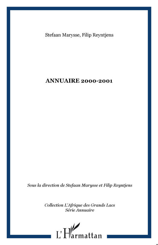 Cet annuaire offre des clés de lecture concernant l'évolution de la région des grands lacs en 2000 et au cours du premier trimestre de 2001. Dans une première partie, sont analysés des thèmes d'actualité dans les domaines politique, social et économique. Une seconde partie offre un ensemble de données factuelles : organigrammes des institutions, données macro-économiques et chronologie.