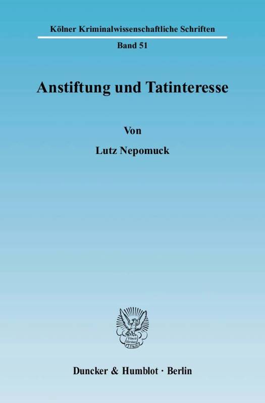 25 bis 27 StGB davon aus, dass ein Strafrechtseinsatz gegen den Anstifter zum Zwecke des Rechtsgüterschutzes typischerweise in gleichem Maße dringlich sein muss wie gegen einen Täter, hingegen in höherem Maße dringlich als in Fällen der Beihilfe. Um dem gerecht zu werden, kennzeichnet er die Anstiftung als Vermittlung eines typischerweise unersetzbaren Tatanreizes bei übergeordnetem Tatinteresse, bei weiterer Konkretisierung als sanktionsbewehrte bzw. Autoritäts- oder Abhängigkeitsverhältnisse ausnutzende Tataufforderung. Zu den vom Autor fokussierten Grenzfällen zwischen Anstiftung und Beihilfe zählt auch die Problematik der Auf-, Um- und Abstiftung, für die ebenfalls ein restriktiver Lösungsansatz entwickelt wird.