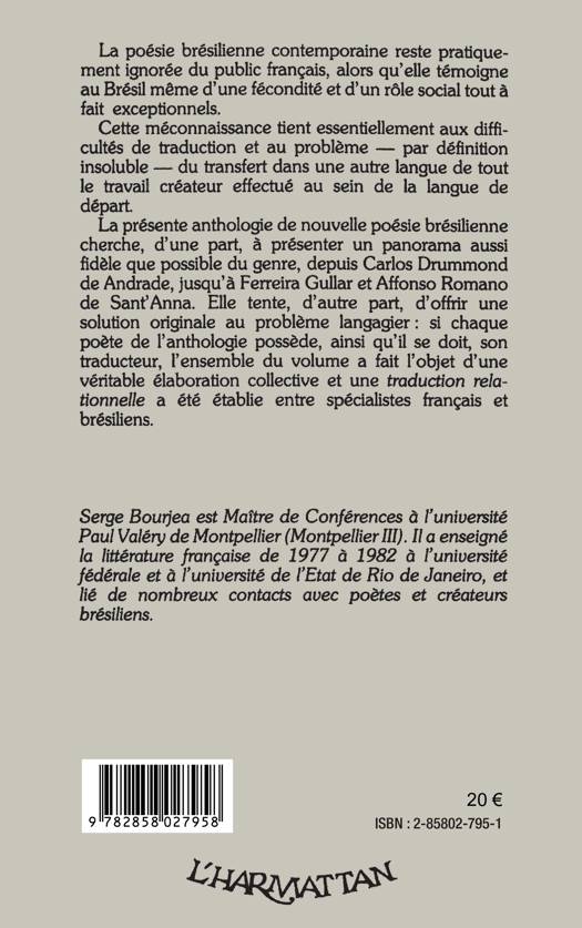 La poésie brésilienne contemporaine reste pratiquement ignorée du public français, alors qu'elle témoigne au Brésil même d'une fécondité et d'un rôle social tout à fait exceptionnels.
