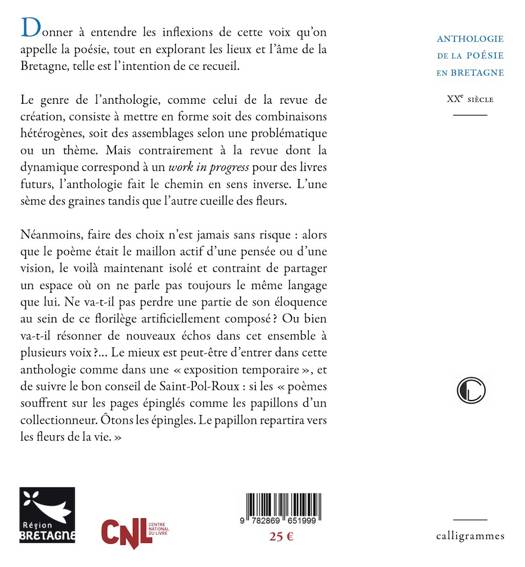 Donner à entendre les inflexions de cette voix qu’on appelle la poésie, tout en explorant les lieux et l’âme de la Bretagne, telle est l’intention de ce recueil.