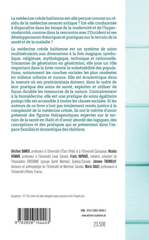 En Haïti, le paysage médical traditionnel est complexe. Des hommes et des femmes ont développé des savoirs et des savoir-faire pour prévenir les problèmes de santé de leurs semblables et pour apporter des réponses pratiques à leurs maladies. Ces figures thérapeutiques proposent des réponses explicatives du mal et contribuent à l'amélioration de la qualité de vie des personnes les plus pauvres. Ils jouent donc un rôle essentiel dans un pays où l'accès aux pratiques biomédicales est difficile et inégal.