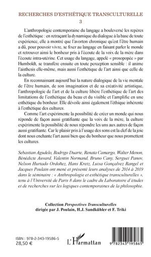 En reconnaissant aujourd'hui la nature dialogique de la vie mentale de l'être humain, de son imagination et de sa créativité artistique, l'anthropologie de l'art et de la culture libère l'esthétique de l'art des limitations de l'esthétique du beau et du visible et l'amplifie en une esthétique du bonheur. Elle dévoile ainsi également l'éthique inhérente à l'esthétique des cultures. Comme l'art expérimente la possibilité de créer un monde qui nous réponde de façon aussi gratifiante que la voix de la mère, la culture expérimente la possibilité de nous répondre les uns aux autres de façon aussi gratifiante. Car le plaisir pris à l'usage des sons est la clef de la joie dont nous enchante l'art aussi bien que du bonheur que nous promettent les cultures.