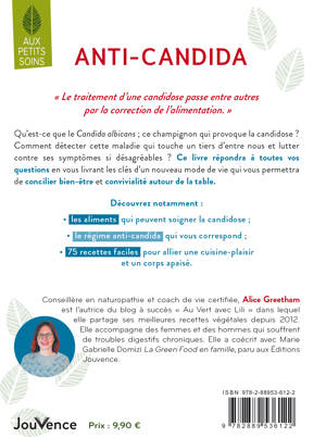 Qu’est-ce que le Candida albicans ; ce champignon qui provoque la candidose ? Comment détecter cette maladie qui touche un tiers d’entre nous et lutter contre ses symptômes si désagréables ? Ce livre répondra à toutes vos questions en vous livrant les clés d’un nouveau mode de vie qui vous permettra de concilier bien-être et convivialité autour de la table.