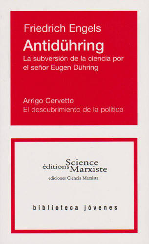 La obra de Engels es una detallada exposición de los fundamentos del marxismo a los que el socialismo está unido. El autor recoge la evolución de las ideas desde la Ilustración francesa a la filosofía idealista alemana pasando por la economía clásica inglesa hasta llegar al comunismo y socialismo utópicos. El Antidühring es un tesoro de ciencia de la política porque proporciona los instrumentos conceptuales para analizar el movimiento de la política, de sus instituciones, de sus poderes y de sus determinaciones.
