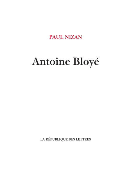 "Antoine Bloyé" retrace l’ascension sociale d’un fils de simple cheminot. Le monde du travail dessine l’armature sociale d’Antoine Bloyé, qui s’élève dans la hiérarchie de la compagnie, au fil des mutations et des déménagements, habite des demeures plus cossues et entre dans une bourgeoisie qu’il adopte. Empruntant beaucoup à la vie réelle de son père, Paul Nizan poursuit ici sa dénonciation de la bourgeoisie. La trahison y occupe une position centrale: changer de classe, c’est non seulement rompre avec un lieu et avec une culture, mais aussi trahir les siens et se trahir, en franchissant la ligne qui sépare les oppresseurs des opprimés. L’importance des thèmes de l’héritage et de la lignée apparaît pleinement dans la pause que constitue la naissance de son fils, laps de temps pendant lequel la mécanique de la répétition, des gestes, des actions et des préoccupations est interrompue. Il délaisse l’usine et le travail pour envisager sa propre mort et considérer son passé: «Antoine pense souvent à sa propre mort, qui viendra, et il contemple ce fils qui n’est rien encore, qui le trahira, qui le détestera peut-être, ou qui mourra – comme la très grande puissance qui le délivrera lui-même, qui le sauvera de la mort.»