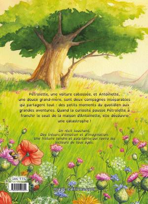 Pétrolette, une voiture cabossée, et Antoinette, une douce grand-mère, sont deux compagnes inséparables qui partagent tout : des petits moments du quotidien aux grandes aventures. Quand la curiosité pousse Pétrolette à franchir le seuil de la maison d'Antoinette, elle découvre une catastrophe ! Un récit touchant. Des trésors d'émotion et d'imagination. Une histoire tendre et palpitante qui ravira les lecteurs de tous âges.
