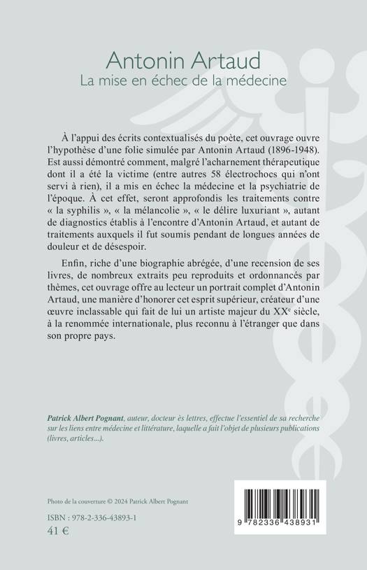 À l’appui des écrits contextualisés du poète, cet ouvrage ouvre l’hypothèse d’une folie simulée par Antonin Artaud (1896-1948). Est aussi démontré comment, malgré l’acharnement thérapeutique dont il a été la victime (entre autres 58 électrochocs qui n’ont servi à rien), il a mis en échec la médecine et la psychiatrie de l’époque. À cet effet, seront approfondis les traitements contre « la syphilis », « la mélancolie », « le délire luxuriant », autant de diagnostics établis à l’encontre d’Antonin Artaud, et autant de traitements auxquels il fut soumis pendant de longues années de douleur et de désespoir. Enfin, riche d’une biographie abrégée, d’une recension de ses livres, de nombreux extraits peu reproduits et ordonnancés par thèmes, cet ouvrage offre au lecteur un portrait complet d’Antonin Artaud, une manière d’honorer cet esprit supérieur, créateur d’une œuvre inclassable qui fait de lui un artiste majeur du XXe siècle, à la renommée internationale, plus reconnu à l’étranger que dans son propre pays.