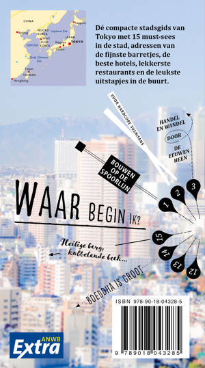 ANWB Extra reisgids Tokyo - Japan Ontdek Tokyo met de compleet vernieuwde reisgids ANWB Extra Tokyo! Tokyo is een wereldstad, maar maakt geen drukke indruk. Door de combinatie van oude tradities en high tech is de Japanse hoofdstad de perfecte bestemming voor een leuke citytrip. De compacte ANWB Extra reisgids Tokyo biedt naast diverse routes door de stad en veel praktische tips over hotels en vervoer ook 15 inspirerende bezienswaardigheden die je tijdens je stedentrip niet mag missen. Ga verse sushi eten bij de Tsukiji Outside Market, bezoek de reuzenboeddha en het bamboebos bij Kamakura of woon een theeceremonie bij in de woonwijk Shirokanedai. Deze kleine reisgids past gemakkelijk in de handtas en heeft een handige uitneembare kaart met daarop de beste tips voor winkelen, eten en drinken en uitgaan. ANWB Extra is de succesvolste reisgidsenserie van Nederland! Met al meer dan 6 miljoen compacte gidsen verkocht over 113 titels, biedt deze serie een reisgids voor nagenoeg iedere denkbare bestemming.