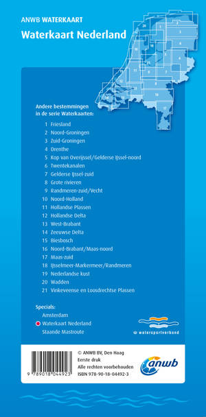 Geen schipper gaat in Nederland het water op zonder de hulp van deze betrouwbare cartografische en nautische informatie van de ANWB, onmisbaar onderweg als je gaat varen! De kaarten zijn scheur- en watervast.