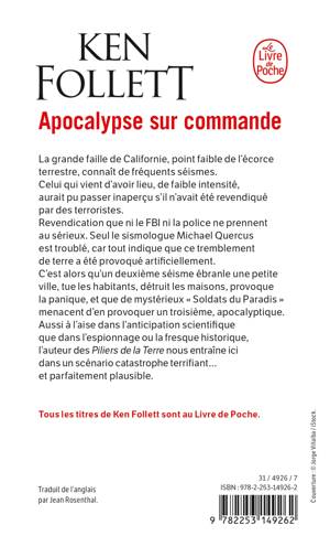 La grande faille de Californie, point faible de l’écorce terrestre, connaît de fréquents séismes. Celui qui vient d’avoir lieu, de faible intensité, aurait pu passer inaperçu s’il n’avait été revendiqué par des terroristes. Revendication que ni le FBI ni la police ne prennent au sérieux. Seul le sismologue Michael Quercus est troublé, car tout indique que ce tremblement de terre a été provoqué artificiellement. C’est alors qu’un deuxième séisme ébranle une petite ville, tue les habitants, détruit les maisons, provoque la panique, et que de mystérieux « Soldats du Paradis » menacent d’en provoquer un troisième, apocalyptique. Aussi à l’aise dans l’anticipation scientifique que dans l’espionnage ou la fresque historique, l’auteur des Piliers de la Terre nous entraîne ici dans un scénario-catastrophe terrifiant… et parfaitement plausible.