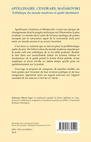 Apollinaire, Cendrars et Maïakovski vivent une époque de changements dont le progrès technique est l'illustration la plus évidente. Le monde est le cadre de l'errance poétique de poètes marqués par la conscience aiguë de la nouveauté, mais pris entre un monde ancien et un avenir incertain. C'est dans ce contexte que se met en place la problématique quête du moi. De l'observation du monde moderne arpenté par le poète naît une esthétique de la trivialité poétisée. Rendre le réel dans son immédiateté induit un lyrisme intense et douloureux où la quête prend la forme d'une plainte, d'une supplique et d'une révolte en même temps qu'elle pose un questionnement sur la poésie. L'ouvrage se propose de comparer, de manière inédite, ces trois poètes par l'examen de leur écriture poétique et de leur imaginaire, apportant ainsi un regard nouveau sur l'apport essentiel de ces auteurs à l'art du xxe siècle.