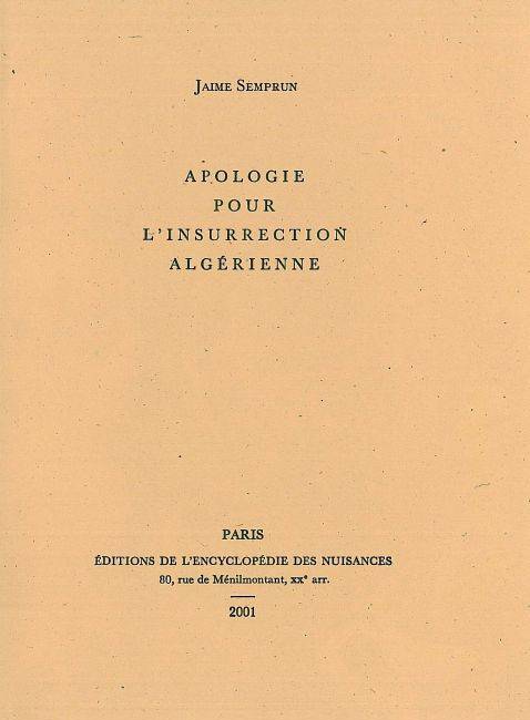 Réflexion politique sur l'insurrection qui a commencé au printemps 2001 en Algérie, en particulier en Kabylie. L'auteur rend hommage à l'héroïsme des insurgés algériens.