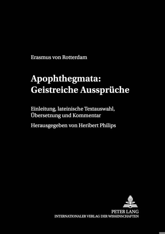 Die Apophthegmata (geistreiche Aussprüche) des Erasmus von Rotterdam (1469-1536) sind ein literatur- und kulturgeschichtlich wichtiges Werk des Renaissance-Humanismus. Dieses bedeutende Spätwerk stellt eine Sammlung von fast 3000 Anekdoten und erbaulichen Erzählungen dar, in deren Mittelpunkt geistreiche Aussprüche berühmter Männer und Frauen der Antike stehen. Das Werk ist 1532 in acht Büchern erschienen und dem jugendlichen Herzog von Kleve, Berg und Jülich gewidmet. Es stellt eine Art Fürstenspiegel dar, wendet sich darüber hinaus an ein größeres Publikum, das auf unterhaltsame Weise belehrt werden soll. Mit der vorliegenden Ausgabe wird zum ersten Mal ein lateinisch-deutscher Paralleltext zusammen mit einem wissenschaftlichen Kommentar vorgestellt. Dieser soll nicht nur die Abhängigkeit des Erasmus von seinen griechischen und lateinischen Quellen dokumentieren, sondern auch durch gezielte sprachlich-stilistische Untersuchungen und durch Erläuterungen zu Inhalt und Komposition das Verständnis für den Autor und sein umfangreiches Spätwerk fördern und somit einen Beitrag zur Erasmusforschung leisten.