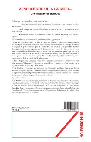 Qu'est-ce qu'apprendre et à quelles conditions apprend-on ? Si dans "l'apprendre" quelque chose est "à prendre", ce qui est "à prendre" ne peut faire sens que s'il fait lien. C'est-à-dire au regard d'une expérience et d'une histoire qui le façonnent autant qu'elles s'y construisent. C'est cette idée que prolonge en écho Jean-Yves Robin.