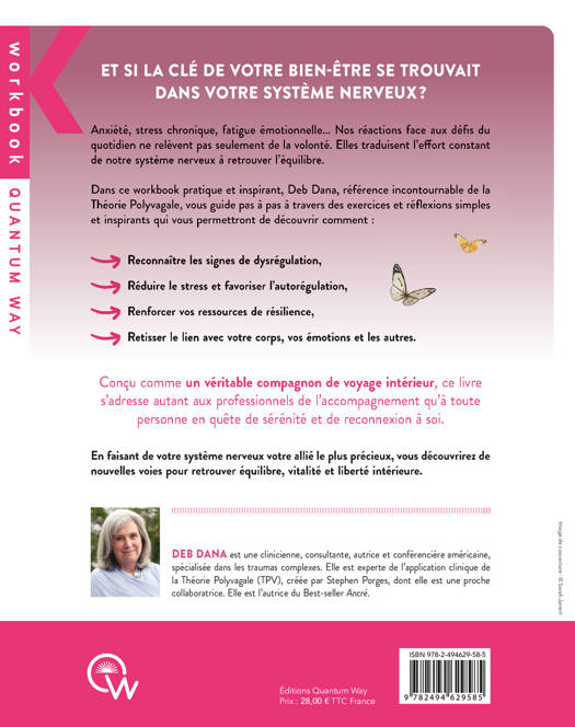 Et si notre système nerveux détenait la clé de votre bien-être ? Anxiété, stress chronique, fatigue émotionnelle… Nos réactions face aux défis du quotidienne sont pas seulement une simple question de volonté, mais le reflet d’un système nerveux qui lutte pour retrouver son équilibre. Ce workbook du système nerveux, guide pratique et accessible de Deb Dana, nous invite à mieux comprendre notre système nerveux autonome et à cultiver un état de sécurité intérieure. Inspiré de la théorie polyvagale et du rôle essentiel du nerf vague, ce parcours en 50 exercices vous aidera à : repérer les signes de dysrégulation ; réduire le stress et favoriser l’auto-régulation ; renforcer vos capacités de résilience ; restaurer la connexion à votre corps, vos émotions, et aux autres. Construit comme un compagnon de voyage intérieur, ce livre s’adresse aux professionnels de l’accompagnement, mais aussi à toute personne en quête d’équilibre, de sérénité et de reconnexion à soi. Une invitation à faire de son système nerveux son allié le plus précieux pour retrouver équilibre et sérénité.