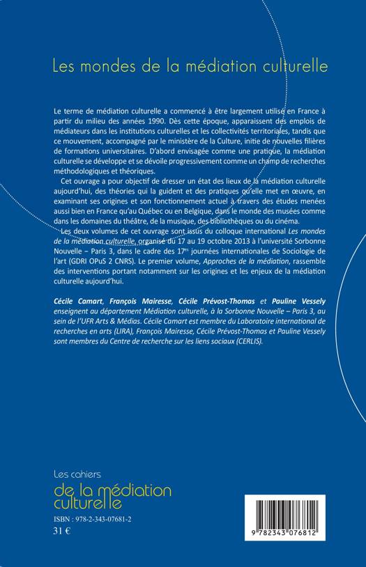 Cet ouvrage a pour objectif de dresser un état des lieux de la médiation culturelle aujourd'hui, des théories qui la guident et des pratiques qu'elle met en œuvre, en examinant ses origines et son fonctionnement actuel à travers des études menées aussi bien en France qu'au Québec ou en Belgique, dans le monde des musées comme dans les domaines du théâtre, de la musique, des bibliothèques ou du cinéma. Ce premier volume rassemble des interventions portant notamment sur les origines et les enjeux de la médiation culturelle aujourd'hui.