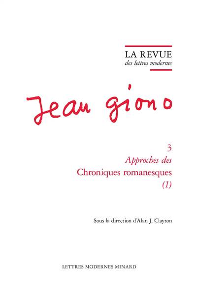Sous le titre « Approches des Chroniques romanesques », on lira ici plusieurs études qui ont en commun d'appliquer des méthodes critiques novatrices à un corpus de textes de Jean Giono jusqu'ici négligé, ces romans formellement très inventifs écrits au lendemain de la guerre. C'est ainsi que Jean-Pierre Pery étudie les structures narratives dans Un roi sans divertissement et « Le Déserteur », Anne et Didier Machu le schème du resserrement et de l'explosion (« Un roi sans divertissement ou les méfaits du tabac »), Jacques Chabot les réseaux imaginaires de Noé (« L'Avarice : un divertissement de roi »). À ce dossier s'ajoutent une étude sur l'amour dans le « Cycle du Hussard » et un important carnet critique.