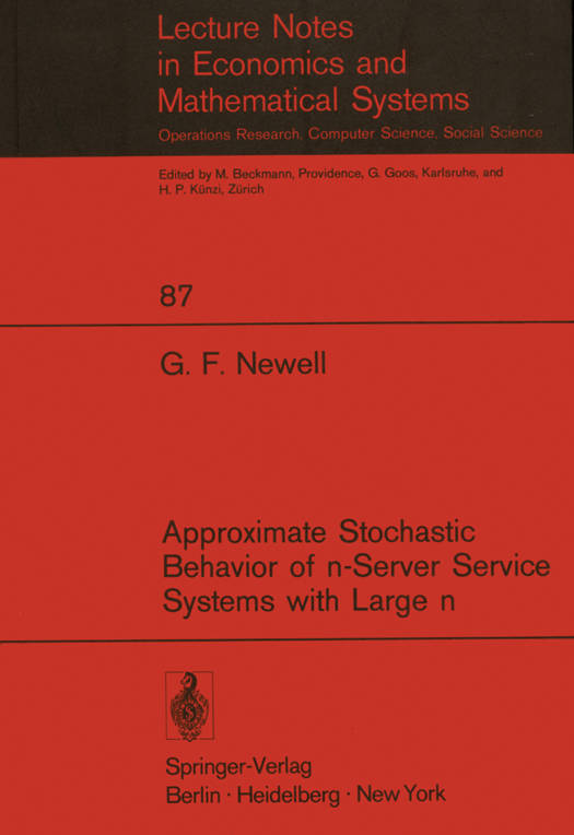 For many stochastic service systems, service capacities large enough to serve some given customer demand is achieved simply by providing multiple servers of low capacity; for example, toll plazas have many toll collectors, banks have many t- lers, bus lines have many buses, etc. If queueing exists and the typical queue size is large compared with the number n of servers, all servers are kept busy most of the time and the service behaves like some "effective" single server wit: l mean se.- vice time lin times that of an actual server. The behavior of the queueing system can be described, at least approximately, by use of known results from the much studied single-channel queueing system. For n» 1, however, (we are thinking p- ticularlyof cases in which n 10), the system may be rather congested and quite sensitive to variations in demand even when the average queue is small compared with n. The behavior of such a system will, generally, differ quite significantly from any "equivalent" single-server system. The following study deals with what, in the customary classification of queueing systems, is called the G/G/n system; n servers in parallel with independent s- vice times serving a fairly general type of customer arrival process. rhe arrival rate of customers may be time-dependent; particular attention is given to time - pendence typical of a "rush hour" in which the arrival rate has a single maximum possibly exceeding the capacity of the service.