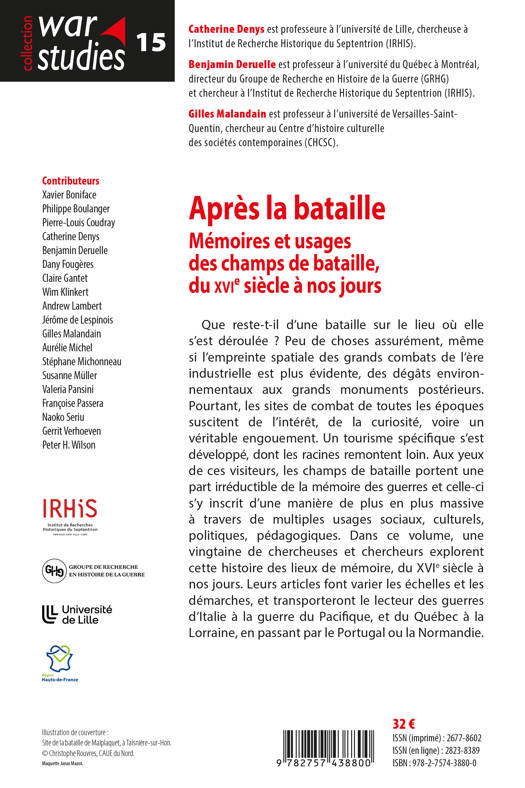 Que reste-t-il d’une bataille sur le lieu où elle s’est déroulée ? Peu de choses assurément, même si l’empreinte spatiale des grands combats de l’ère industrielle est plus évidente, des dégâts environnementaux aux grands monuments postérieurs. Pourtant, les sites de combat de toutes les époques suscitent de l’intérêt, de la curiosité, voire un véritable engouement. Un tourisme spécifique s’est développé, dont les racines remontent loin. Aux yeux de ces visiteurs, les champs de bataille portent une part irréductible de la mémoire des guerres et celle-ci s’y inscrit d’une manière de plus en plus massive à travers de multiples usages sociaux, culturels, politiques, pédagogiques. Dans ce volume, une vingtaine de chercheuses et chercheurs explorent cette histoire des lieux de mémoire, du XVIe siècle à nos jours. Leurs articles font varier les échelles et les démarches, et transporteront le lecteur des guerres d’Italie à la guerre du Pacifique, et du Québec à la Lorraine, en passant par le Portugal ou la Normandie.