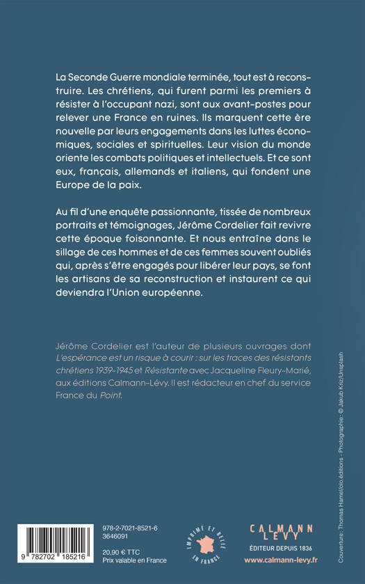 Au fil d’une enquête passionnante, tissée de nombreux portraits et témoignages, Jérôme Cordelier fait revivre cette époque foisonnante. Et nous entraîne dans le sillage de ces hommes et de ces femmes souvent oubliés qui, après s’être engagés pour libérer leur pays, se font les artisans de sa reconstruction et instaurent ce qui deviendra l’Union européenne.
