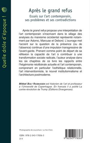 Après le grand refus propose une interprétation de l'art contemporain s'inscrivant dans le sillage des analyses du marxisme occidental représenté notamment par Adorno, Marcuse et Debord. L'ouvrage met l'accent sur la question de la présence (ou de l'absence) continue d'une impulsion transgressive de l'avant-garde. Prenant comme point de départ de sa réflexion la capacité de l'art à contribuer à une transformation sociale radicale, l'auteur analyse dans les six chapitres de ce livre les rapports entre l'hégémonie néolibérale actuelle et l'art contemporain, comprenant en particulier l'esthétique relationnelle, l'art interventionniste, le nouvel institutionnalisme et l'architecture postmoderne.