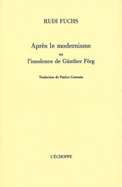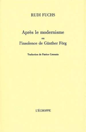 Dans ce texte écrit pour l'exposition de Günter Förg au musée d'Amsterdam en 1995, l'auteur poursuit la réflexion amorcée dans L'étrange absence de Kurt Schwitters. Cette fois, c'est à partir de l'oeuvre d'un jeune peintre allemand contemporain que l'auteur réfléchit à la position actuelle de la peinture en Europe.