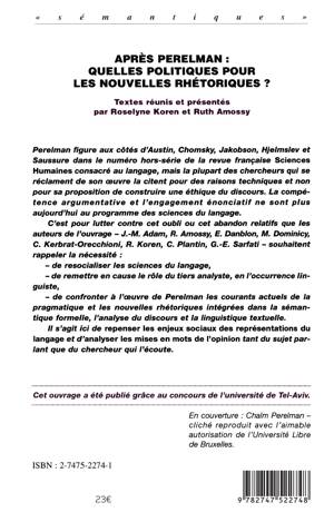 APRÈS PERELMAN : QUELLES POLITIQUES POUR LES NOUVELLES RHÉTORIQUES ?