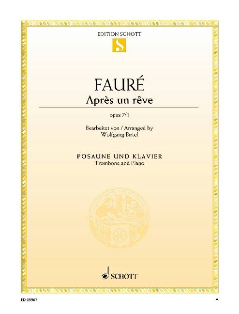 The first of three songs written by Faure in the 1870s, that he would later publish as Op. 7. Après un rêve is a hauntingly romantic song that is now available in this setting for trombone and piano. Instrumentation: trombone and piano op. 7/1