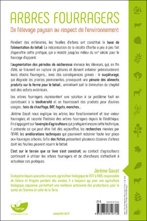 Pendant des millénaires, les feuilles d'arbres ont constitué la base de l'alimentation du bétail. La mécanisation de la récolte d'herbe a peu à peu fait disparaître cette pratique, qui a résisté jusqu'au milieu du XXème siècle pour le fourrage d'appoint. L'augmentation des périodes de sécheresse menace les éleveurs, qui, en fin d'été, se trouvent en rupture de pâtures et doivent entamer prématurément leurs stocks fourragers… avec des conséquences graves : le surpâturage, qui dégrade les prairies permanentes, provoquant une pénurie des aliments produits sur la ferme pour le bétail… entraînant soit la diminution du cheptel soit des achats extérieurs. Les arbres fourragers représentent une solution à ce problème tout en contribuant à la biodiversité et en fournissant des produits pour d'autres usages : bois de chauffage, BRF, fagots, manches… Jérôme Goust nous explique les arbres, leur fonctionnement et leur valeur fourragère et raconte l'histoire des arbres fourragers depuis le Néolithique. En s'appuyant sur l'exemple d'agriculteurs qui pratiquent encore cette technique, il présente ce qui peut être fait dès aujourd'hui, les recherches menées par l'INRA, les améliorations techniques qui pourraient redonner toute leur place aux fourrages arborés. Enfin des fiches présentent plusieurs dizaines d'arbres dont les feuilles peuvent nourrir le bétail. C'est sur le terrain que ce livre s'est construit, au contact d'agriculteurs continuant à utiliser les arbres fourragers et de chercheurs s'attachant à actualiser ces pratiques.