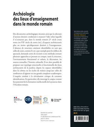 Des découvertes archéologiques récentes ainsi que la relecture d'anciens dossiers conduisent à nuancer l'idée selon laquelle il n'existerait pas, dans le monde romain (Ier siècle avant notre ère-VIIe siècle de notre ère), d'espaces architecturés plus ou moins spécifiquement destinés à l'enseignement. L'absence de structures aisément identifiables en tant que salles de cours, comme il y en a par exemple pour les édifices de spectacle, demande certes de recourir à une méthode croisant plusieurs approches et prenant en compte, outre la structure, l'environnement fonctionnel et urbain, la décoration, les sources textuelles, l'histoire culturelle. Il est alors possible de proposer une typologie structurelle et fonctionnelle des lieux architecturés de la paideia, depuis les espaces identifiables dans les domus ou les écoles de maîtres jusqu'aux salles de conférences d'apparat ou aux grands complexes académiques. L'enquête conduit à la réévaluation critique de certaines identifications. En particulier, elle interroge le campus comme lieu potentiel de la formation intellectuelle de la jeunesse dans l'Occident romain.