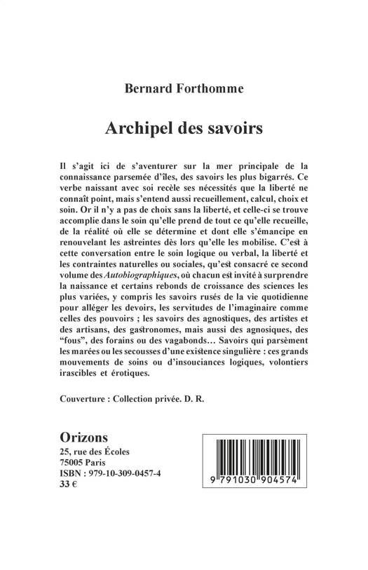 Il s'agit ici de s'aventurer sur la mer principale de la connaissance parsemée d'îles, des savoirs les plus bigarrés. Verbe naissant avec soi. Il n'y a pas de choix sans la liberté. C'est à cette conversation entre le soin logique ou verbal, la liberté et les contraintes naturelles ou sociales, qu'est consacré ce second volume des Autobiographiques: chacun est invité à surprendre la naissance et certains rebonds de croissance des sciences les plus variées; les savoirs des agnostiques, des artistes et des artisans, des gastronomes, mais aussi des agnosiques, des fous, des forains ou des vagabonds... Savoirs qui parsèment les marées ou les secousses d'une existence singulière: grands mouvements de soins ou d'insouciances logiques, volontiers irascibles et érotiques.