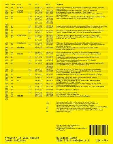 Depuis six décennies, la construction de la Voie Rapide reste inachevée et depuis un demi-siècle de nouvelles sections sont ouvertes aux automobilistes. Pour rendre compte de la Voie Rapide, il a fallu l'expérimenter, en étant véhiculée, mais aussi - et finalement surtout - en la longeant à pied. Il s'agissait de documenter davantage son inexsertion que son usage motorisé. Cette démarche empirique a ensuite été articulée à un dispositif documentaire en deux volets et un ancrage théorique principal. Un ancrage théorique issu de l'hodologie, en l'occurrence la science des routes et de leur immédiat environnement, de leur conception, de leur réalisation, de leurs usages et habitation. Il est, de fait, des Niçois qui habitent tout contre la Voie Rapide et, au-delà, tous les Niçois sont amenés à fréquenter sa chaussée et à se trouver entre ses portiques. Des dispositifs documentaires ont été parallèlement mis en place, fondés sur une photographie topographique et sur plusieurs plongées dans les archives, occasionnant des collectes visuelles pareillement photographiques. Il s'agit ainsi de donner à lire et à voir les textes, cartes, graphiques, tirages et papiers divers que contiennent les dossiers administratifs et techniques. Il s'agit enfin de se demander : dans quelle mesure cette autoroute urbaine relève d'une sculpture civilisationnelle (celle d'une civilisation automobile sans entrave), d'un ouvrage d'art (sans commune mesure avec son environnement immédiat) et dépend de multiples transactions immobilières (parcelle après parcelle) et d'autant de micro-négociations (entre administrés et administration) ? Exproprier, expertiser, dédommager, reloger, résoudre des problèmes de maçonnerie domestique ou de cadencement des trains pendant la construction des portiques... Il y a là une poïétique de la Voie Rapide à la fois technique, administrative et domestique.