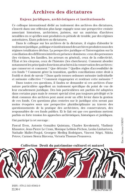 Cet ouvrage aborde le traitement juridique, politique et institutionnel des archives produites sous les régimes totalitaires déchus. Ces archives d'une nature particulière appellent-elles un traitement spécifique du point de vue de leur encadrement juridique ? La perspective juridique et l'interrogation sur la conciliation des différents intérêts en présence dominent : ceux des personnes, de la collectivité, de l'État et des citoyens, de l'histoire. Que conserver et comment ? Comment gérer la transition, quelles conciliations entre droit de l'oubli et droit de savoir ?