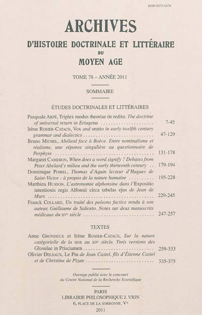 Le présent livre propose l'étude de la constitution, durant le haut Moyen Âge latin, d'une position philosophique : le réalisme de l'immanence à propos des universaux. Cette position est fondée sur la conviction qu'il existe, dans le monde qui nous entoure, certes des individus particuliers - ce tilleul, cette tortue -, mais aussi des entités universelles. Ces entités n'existent pas séparées des individus, mais intégralement réalisées en eux, sans variation ni degré. Cet engagement philosophique résulte d'une exégèse des Catégories d'Aristote, réinterprétées selon des philosophèmes issus de la pensée de Porphyre. La généalogie de cette position est ici retracée en abordant successivement ses sources tant grecques que latines et ses ancêtres patristiques (avant tout Grégoire de Nysse), puis son élaboration conceptuelle durant les premiers siècles du Moyen Âge latin jusqu'à la critique qu'en donnera Pierre Abélard, et ce, par l'analyse de l'ontologie des quatre philosophes qui l'ont soutenue : Jean Scot Érigène, Anselme de Canterbury, Odon de Cambrai et Guillaume de Champeaux. Ce parcours permet de dessiner les contours d'un projet philosophique : comprendre, analyser et décrire le monde sensible au moyen des concepts issus de la logique aristotélicienne.