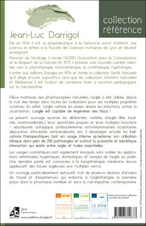 Pièce maîtresse des pharmacopées naturelles, l’argile a été utilisée depuis la nuit des temps dans toutes les civilisations pour ses multiples propriétés curatives. Le présent ouvrage recense les différentes variétés d’argile, leurs spécificités propres et leurs multiples fonctions. Il développe ensuite les indications thérapeutiques, tant en usage interne qu’externe, son utilisation clinique dans près de 200 pathologies et surtout la puissante et bénéfique interaction qui existe entre argile et huiles essentielles. Une partie est consacrée à la fangothérapie, médecine douce appliquant des boues argileuses aux multiples vertus. Un ouvrage particulièrement exhaustif, fruit de plusieurs dizaines d’années de travail et d’expériences, qui redonne à l’argilothérapie la première place dans la pharmacie familiale et dans la naturopathie contemporaine.